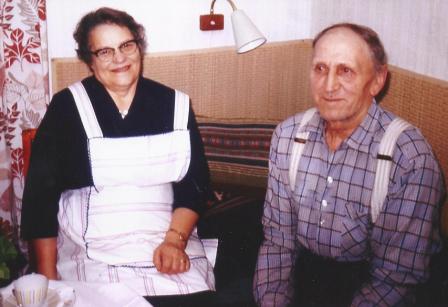 Far och mor framför vårt hus |