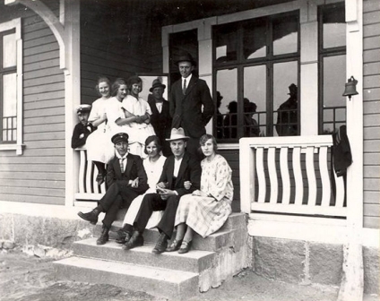 Enligt uppgift är det Elvie och Johan längst bak (3:a oc 5:a fr vänster). Osäkerhet dock kring Johan eftersom han emigrerade redan 1907. Var han hemma på besök ?.
