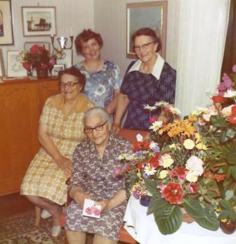 Mor, Ada och Sylvia tillsammans med mormor Amanda på hennes 90-årsdag 1972. |